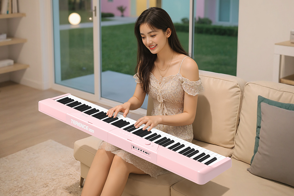 仿象牙質感的鋼琴鍵盤,更接近傳統鋼琴的觸感,模擬鋼琴的下鍵深度、更高靈敏度的鍵盤反饋,彈奏時能表現出細致的強與弱,更接近真實鋼琴演奏感;每一次力度調整,都能清晰感知旋律變化。 |