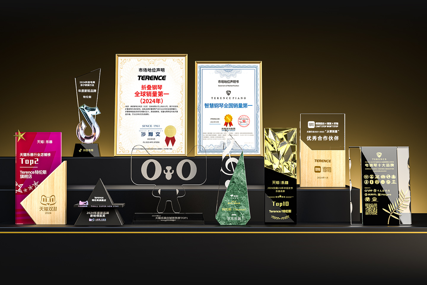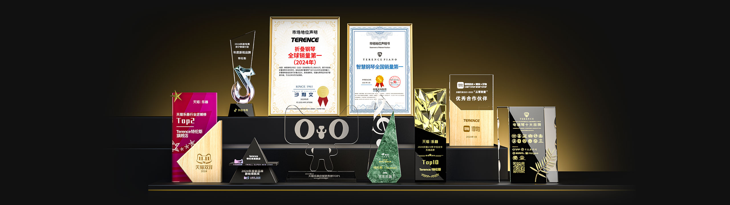 特倫斯創新科技榮獲:折疊鋼琴全球銷量第一(2024年)[1]、智慧鋼琴全國銷量第一[2]、2022年天貓樂器行業TOP1、2023年天貓618樂器行業TOP1、2024抖音電商年度新銳品牌、2024天貓樂器店鋪TOP2、2024天貓年度新品牌新銳領航獎、2023年京東最受用戶喜愛品牌等獎項;